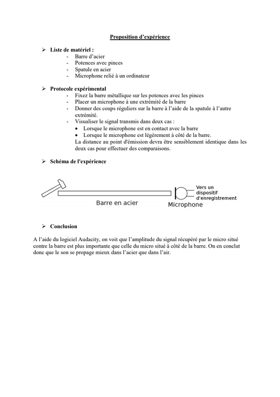 Je vous dépose aujourd'hui la correction du travail sur l'expérience permettant de mesurer la vitesse du son dans l'air.