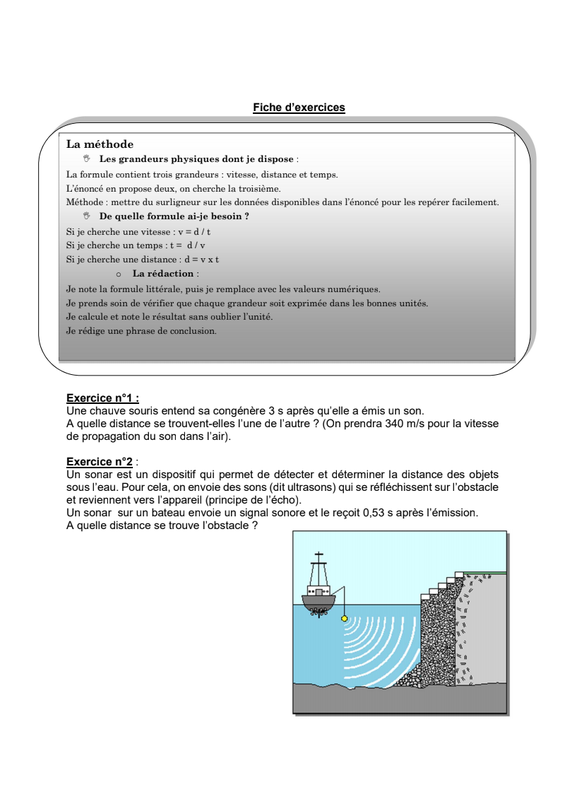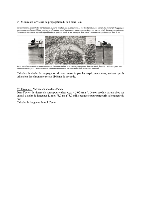 Pour le 26 Mai, Recopier la correction du 2) Mesure de la vitesse du son dans l'eau. Puis, chercher le 3°) Vitesse du son dans l'acier et le rédiger sur une feuille de classeur que vous m'enverrez sur l'ENT.