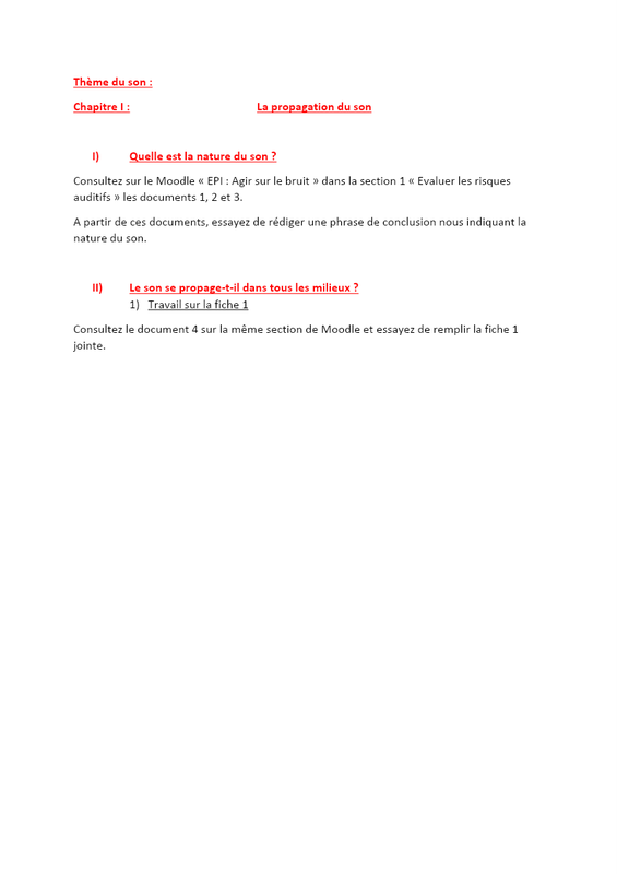 Je vous demande de répondre pour le 22/04 aux questions du document ci-dessous après avoir consulté les documents sur le Moodle "Agir sur le bruit". Je vous envoie la clé d'inscription sur l'ENT.