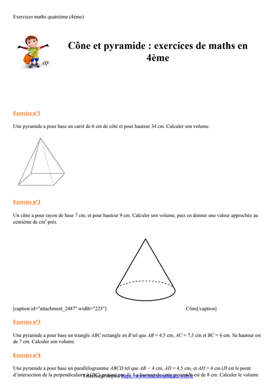 Cone Et Pyramide Exercices De Maths En 4Eme